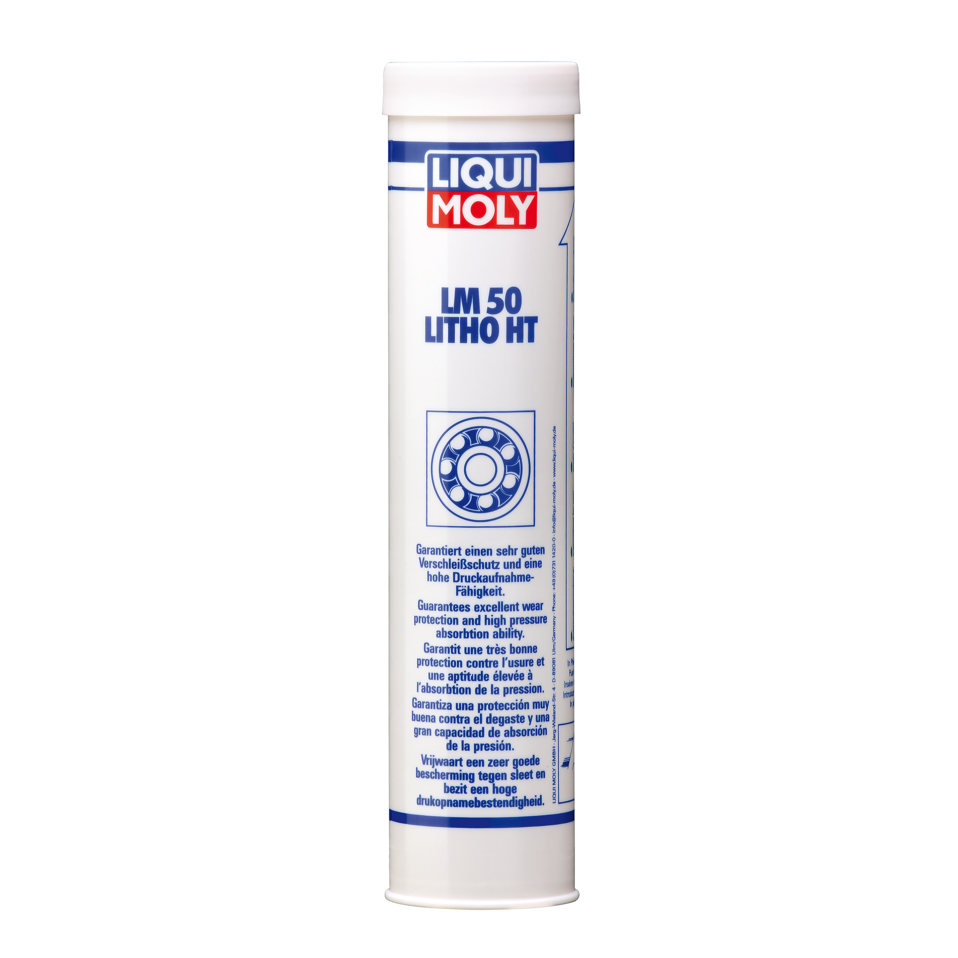 LIQUI MOLY LM 50 litho Grease HT 400G LIQUI MOLY LM 50 litho Grease Top Quality Products Made in GermanySqueeze-stable water resistant oxidation and corrosion resistant high performance lithium complex soap grease. Can be used everywhere. Guarantees very good wear protection and high-pressure absorbance capacity. Designation acc DIN 51502 KP2N-30. Service temperature: –30 °C to +140 °C. Intermittent up to +180 °C. For lubrication of high-load bearing plain and roller bearings such as wheel bearings or greased industrial transmissions.