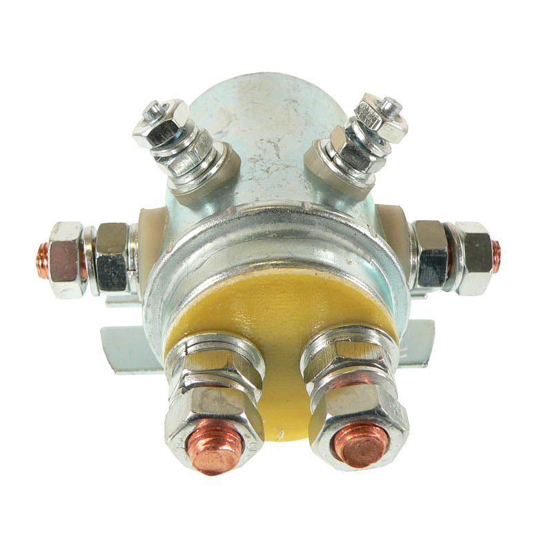 Durable 12-volt solenoid relay designed for reliable starting and charging in winch motors.